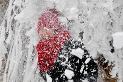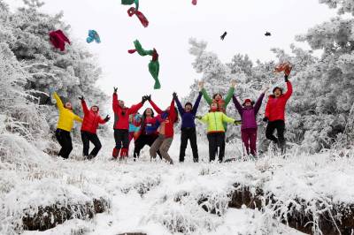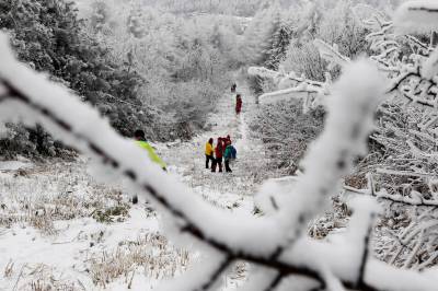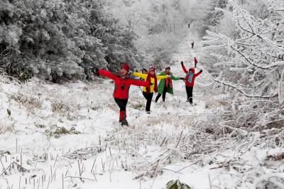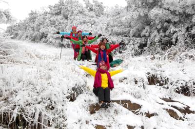 2014年元月11日来自宜昌的户外人员到湖北省巴东县绿葱坡观赏雪,体验大自然给人们带来的美景。