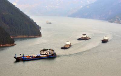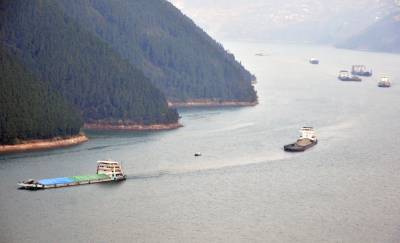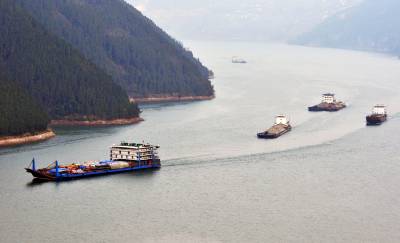 三峡库区成水上“高铁” 1月13日,几艘货船正行驶在巴东县官渡口镇长江巫峡口水域。随着三峡库区水位再次攀升至175米,两岸的消落带淹没水中,狭窄的河道变宽,当地及上下船只紧紧依托“黄金水道”优势,大力发展水上交通和航运业,水上“高铁”优势明显。(本报视界网 梁勇 摄)