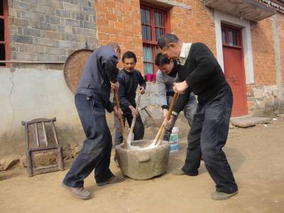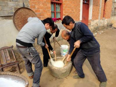 在鄂东北红安乡村,腊月打糍粑和杀年猪一样,成了过年的象征。现今杀年猪少了,但打糍粑迎新年的乡俗一直在延续。糍粑的原料是糯米,制作工艺简单,需要多人集体合力将蒸熟的糯米趁热捣碎成粘稠体,再用雕花粑印印成若干大小均匀的圆糍粑,喻示“有缘”、喜庆、吉祥和团圆。糍粑是过年待客的佳肴,也是送亲访友的重礼,打糍粑是乡村罕见的集体活动,更是黏住亲情的集结号,是团结与力量美的象征。本报视界网耿红元 水玉龙 摄