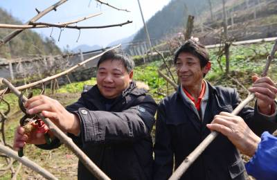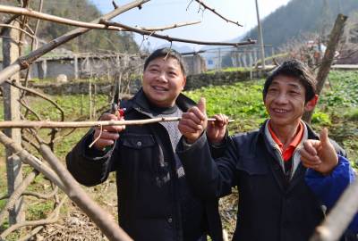 1月14日,建始县红岩寺镇林业站站长雷曦到该镇10组孙圣林猕猴桃果林验收剪枝冬管情况,并进行再指导时,这位44岁聋哑果农对着镜头不由竖起大拇指夸起这为贴心技术员。近两年,在猕猴桃产业发展中,雷曦与孙圣林结成对子,从规划到栽植,再到大田管理,果子采收,每到季节,主动上门,比划着手把手教这位聋哑果农,使他家猕猴桃种植面积由不足几分田发展到5亩,并基本掌握了技术,一举成为当地种植大户,这一结对帮扶在远近备传佳话。本报视界网刘波、卢晓红摄