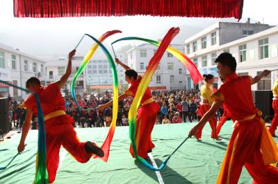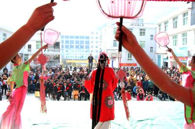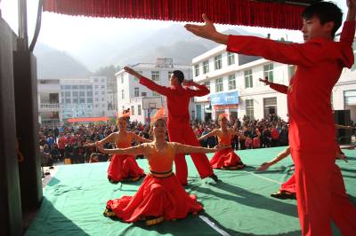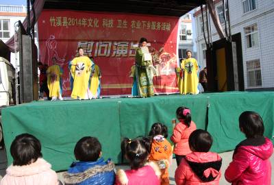 1月14日,竹溪县山二黄展演中心为群众表演文艺节目。当日,竹溪县文化、科技、卫生、农业部门驱车2个多小时来到兵营镇,开展“四下乡”服务活动,为该镇群众送去“文化年货” ,深受群众喜欢。