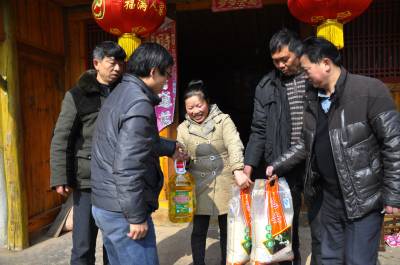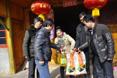 1月15日,在恩施市红土乡大岩村纸棚沟组,工作人员正在给计生困难家庭送去大米和油。