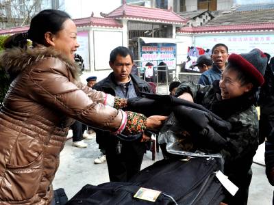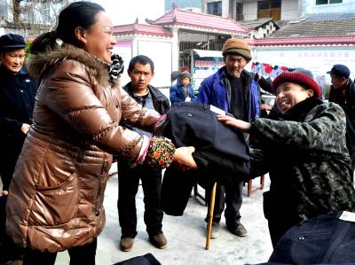 节前发新衣,院民乐开怀 1月15日,来凤县革勒车镇中心福利院的工作人员在为老人们发新衣,发年货。在春节来临之际,该福利院结合老人们的实际要求,为全院123名院民量尺寸、选型号、选购糍粑及过年用品,确保所有院民(含分散供养)穿上新衣过新年。 本报视界网 姚丙然、姚双云 来凤县革勒车镇文化服务中心 电话:13997799385