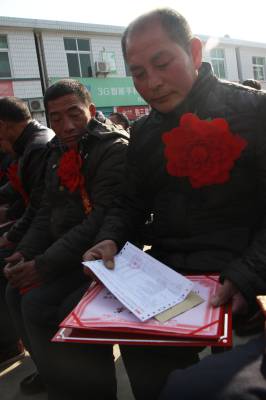 1月14日,竹溪县兵营镇明家梁子村柯尊民领到“十星级文明户”匾牌、荣誉证书和一张保额为50元的财产保险保单。 当日,该镇对“十星级文明户”进行表彰。