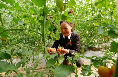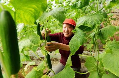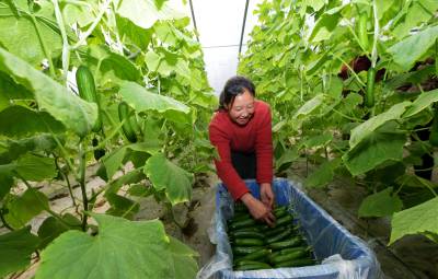 寒冬喜摘大棚菜(陈泉霖 摄)