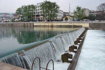 (签约摄影师汪盛华)3月28日,宣恩县城贡水河第三级(图一)、第四级水力自动翻板坝新建进入尾声。据了解,宣恩县从2005年开始投巨资新建武陵山区首个梯级(1—4级)水力自动翻板坝,水力自动翻板坝依靠水的作用开闭由钢筋混凝土制成的翻板而升降水位,与其配套工程——排污渠、河堤、人行道、景观桥、景观树木形成有机统一体。清净澎湃的河水从已建成的第一级水力自动翻板咆哮而下(图二),1—4级水力自动翻板坝建成后,形成长5.7千米、深0.9—2.5米、宽60—80米的”清水走廊”,成为县城的一大景观,具有美化县城环境、提高县城贡水河段防洪标准、方便市民水上娱乐等多种重要功能。宣恩县组织环卫工人不定期打除草剂(图三)清除河堤上长的杂草,使”清水走廊”常年保持干净。