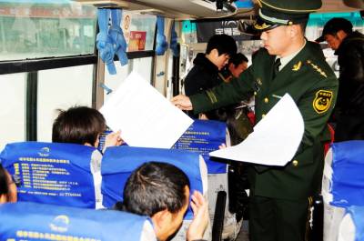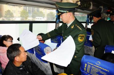 1月16日,郧县公安消防大队官兵来到客运站向乘客发放<<消防安全常识二十条>>和春节喜庆放鞭炮的安全常识等宣传单,宣传严禁携带易燃易爆品上车等安全规定,检查随车灭火器是否过期等不安全隐患,确保春运期间安全畅通。 夲报视界网周家山 王林摄