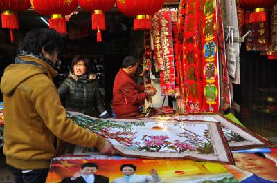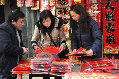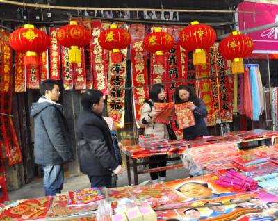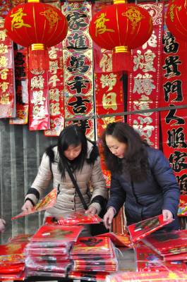 返乡村民集市忙年 1月18日,在恩施市红土乡农贸市场上一春联销售摊点前返乡村民们在争相选购春联。 近几天来,该乡多数外出务工村民已纷纷返乡过年,上集镇市场购春联和年货的人数开始增多,乡村那喜庆和热闹年味开始变得火热起来。(本报视界网彭绍峰摄)