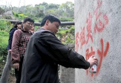 清明祭祖莫忘安全29日,黄石市新建区社区干部在通往上山的要道口墙上喷写防火安全标语,提醒上山祭祖居民牢记防火安全。清明节即将来临,为防止居民祭祖时烧纸放鞭等引起火灾,他们提前做好防火安全宣传工作,届时他们还将派人在山间巡逻,确保清明节防火安全。黄石市黄石日报摄影部邱孝威摄电话:13807232603