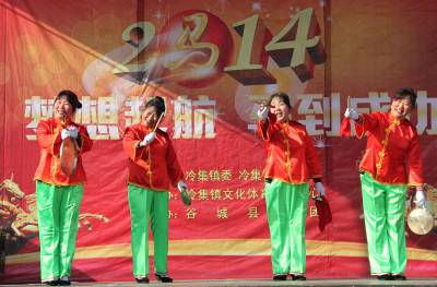1月21日,冷集镇组织的文艺表演队,正在给农民表演文艺节目,为农民送去新春的祝福。为了活跃农民文化生活,谷城县冷集镇在各村、社区长年培养了20多支、上千人、土生土长、不走的骨联队伍。他们表演的节目,大多也是自编、自导,有浓厚的乡土味道,深受农民喜爱。 本报视界网马明刚摄
