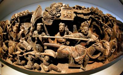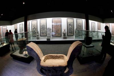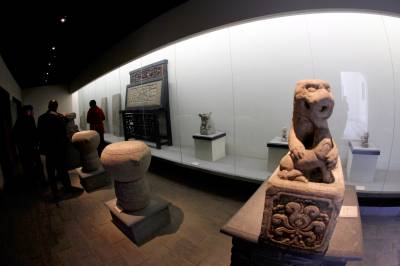图为北宋时期大幅人物浮雕屏(1月16日摄)。