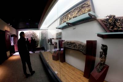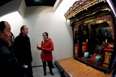 宜都市陆城镇红春社区民俗文化村,仿明清式的建筑群内,石山叠水、拱桥亭台错落有致。社区里有个占地5500平方米、总建筑面积3400平方米、展厅面积达3100平方米的湖北最大的民办民俗博物馆——正国民俗博物馆,3500多件藏品分布于馆内独立的主题小馆里。它由年近花甲的宜都市陆城街办红春社区党总支书记刘正国耗费10年时间,跑遍大半个中国搜集的3000多件民间宝贝,从春秋战国跨越到现代,其中不少宝贝被国家文物鉴定中心鉴定为国家民间国宝。为展示这些文物,他自费投资3000余万元建设了这座湖北最大的民办博物馆,命名为“正国民俗博物馆”,并带领乡邻建造“民俗文化村”。博物馆位于红春民俗文化村正中央,黑瓦白墙,马头翘角,是典型的徽派建筑风格,分两个院落、上下两层楼,有“石雕展厅”、“木雕展厅”、“状元文化展厅”、“兵器展厅”、“绣品展厅”、“宗教文化展厅”等16个展厅,展品以明清时期三峡地区的民间文物为主,从春秋战国时期小小的玉带扣到清代土家族家具雕花床,存有万余件奇石古画、祭祀用品、古代瓷器、家书族谱等珍品实物,其中已登记藏品有1800余件,经文物专家鉴定的一级文物2件、二级文物10件、三级文物20件、一般文物1768件,未登记藏品一万余件,行走其间,能感受到中国民间文化之深远博大。刘正国的最大梦想是让“正国民俗博物馆”成为文化交流的重要窗口和旅游胜地。本报视界网:梁斌 摄