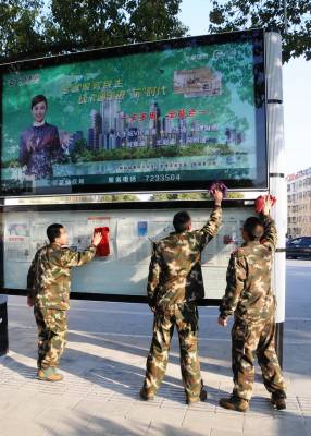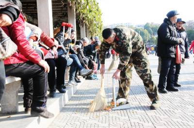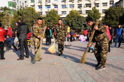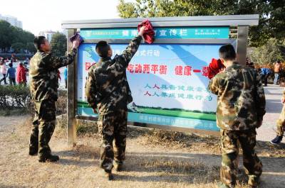 1月21日下午,郧县公安消防大队官兵来到郧阳文化广场清扫拉圾,并用麻布擦洗读报栏和宣传栏,为新春佳节的到来营造清洁干净的城市环境。近些年在创建文明卫生城市活动中消防大队官兵始终是主力军,在城市广场,街道,烈士陵园,光荣院总能看到他们影子,向社会传递正能量。 图为消阶官兵正在清扫广场和擦洗读报栏时的情景。 夲报视界网周家山 王林摄