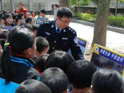 ”安全教育日”里安全行3月29日,咸丰县小村派出所干警张品军正在为小村民小学生讲解安全出行注意事项。当天正是第15个”全国中小学安全教育日”,该县教育、政法等部门联合组成专班,分别前往全县40多所中小学校开展”安全教育校校行”活动,让全县5万多名中小学生的自我保护意识得到增强,同时也提高了他们的安全防范能力。(视界网徐定斌摄)作者单位:咸丰县委宣传部联系电话:13593619460