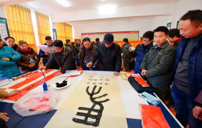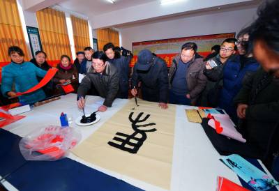 书法家进企业写对联贺新春