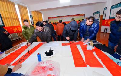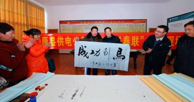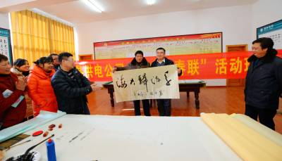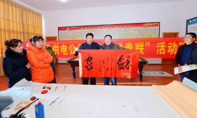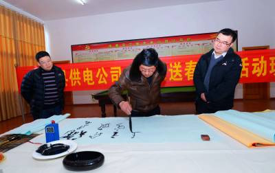 1月21日,保康县供电公司邀请襄阳书画艺术学院、襄阳老年书画协会知名书画家,在保康县供电公司工会活动室举办“名家送春联、喜庆吉祥年”活动。 当天,在保康县供电公司工会活动室,襄阳书画艺术学院、襄阳老年书画协会赵正启、刘春生、谭天波等3位知名书法家,先后撰写120多幅春联、50多幅书法作品,现场免费赠送给保康县供电公司干部职工,与保康县供电公司干部员工一起喜迎新春。(本报视界网 陈泉霖 崔道斌 摄)电话:13476356829