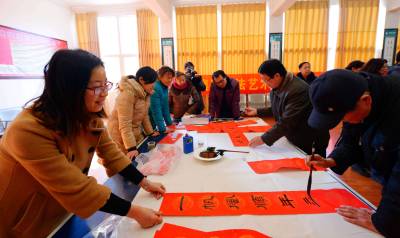 > 书法家进企业写对联贺新春