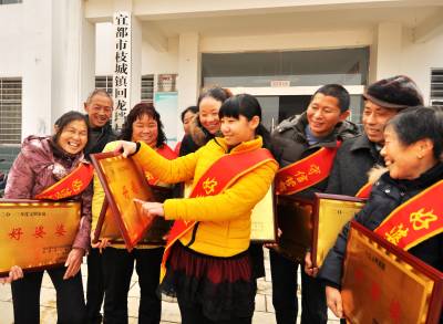 道德模范人人夸 宜都市枝城镇回龙垱村从2010年起已连续评选了四届道德模范,四年共评选出58位道德模范,全村形成了向道德模范学习争当道德模范的良好氛围。2013年,该村与联点单位—宜都市人社局联合评选出11名道德模范。图为1月23日,2013年度道德模范在表彰会现场。本报视界网冉德强摄
