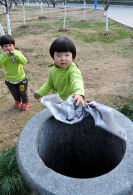 1.17.下午,应约到青山和平公园为双凤宝贝拍片时,发现于2010.9.9.出生的丁淼涵/丁淼漫,尽管只有3岁多点。但我在为她们拍片过程中,发现她们总是自觉把食品包装纸和垫坐的报纸主动扔进就近垃圾箱内。