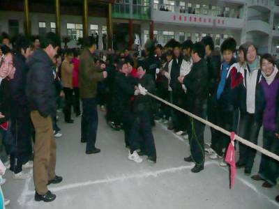 3月29日课外活动时间,郧县一中操场上举行师生拔河比赛,比赛的一方是教师,另一方是学生。这是该校正在开展的”走近学生”活动的一个缩影。郧县一中为了构建健康和谐的育人环境,狠抓教师和学生之间关系的改变,努力促使良好师生关系的形成。要求教师充分利用课余时间,采取交心谈心、心理辅导、网上交流、文体活动等不同的形式走进学生,与学生打成一片,了解学生的心声,把握学生的思想,解决学生的困难,争做学生的知心朋友,使学生充分感受到教师的温暖。(郧县一中郑玉宝0719-723258713797825780)