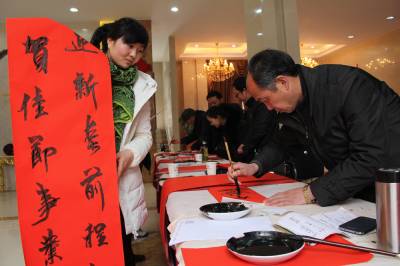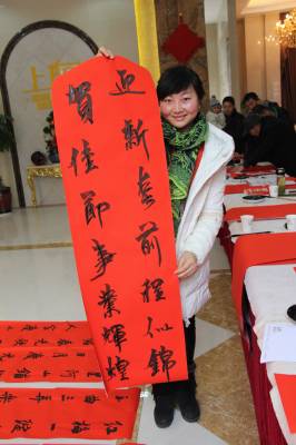1月25日,丹江口市一位市民拿着春联开心极了。据了解,由丹江口市书法家协会携手上海花园和丹江口房产网,举办“万幅春联送万家”大型公益活动。书法家们在为期3天的时间里,泼墨挥毫,将浓浓的新年祝福洋溢于笔端,以中华民族传统的迎新方式,迎接新年的到来。许多市民前去观摩、免费领取书法家们现场创作的对联。 本报视界网 钱芹 摄 详细通联:湖北省丹江口职业技术学校办公室:钱芹 邮政:442708 手机:13477990812
