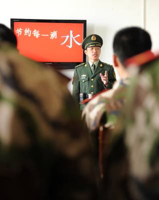 西南干旱敲响警钟节约用水武警战士先行30日,潜江市武警中队为全体官兵上”节水课”,教育战士牢固树立节约用水的意识,科学合理利用水资源。我国西南地区干旱灾情发生以来,该中队积极组织官兵收看中央电视台的相关报道,并制定了节水制度,洗过蔬菜的水用来拖地,然后再用来浇菜地,洗澡淋浴时间控制在5分钟,漏水的水管必须及时改造更换,官兵养成了节约用水的好习惯。本报视界网吴燕军摄