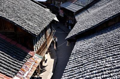 情韵老街恩施市红土的老街,婉约、明媚,情韵悠长。老街是一部史诗,沧桑而悠然。对于老街的感情,我想我是深沉的,深沉得良久落笔不下。即使是在暖暖的春阳里,都有一种深沉的味道,在季节的更替里,久久弥漫。依山傍水历史是这样记载老街的:位于恩施市城东直线42公里,坐落在山谷平坎之中,四面群山环绕,溪涧纵横,林壑优美,东有贵人山,南有玉女峰,西有飞龙八潭,北有九龙(坡)嬉水。两山夹谷,红土溪终年不断,由南向北流淌。集镇要选择有长流水的地方建街是一种必然,人畜聚集之所,饮用水也是首选条件。古时建街,以经济目的为主,集市就是集中买卖的地方。红土溪所处的位置,南自大河沟北至清江河岸,东西两大峡谷夹抱之内,在相对最为集中的点上,山民四方辐聚,路程悬殊不大。一溪明媚的水,从老街房前的屋檐下,穿街而过。排水无明暗沟,顺街流入溪沟,渐成小河。溪水澄澄澈澈,岸边木楼幢幢,相互映衬得妩媚灵动。山下沟溪边,不时有捣衣声,从容地漂洗着老街平和宁静的日子。跨溪建两座石拱桥和一座木桥联通两条主街道。小桥下潺潺流水,四面群山环拱,绿荫匝地,木楼青瓦,鳞次栉比,间有雕花窗栏跻身其间,店铺林立,远远望去,街道是一条被压弯的脊椎,曲曲拐拐。各种商品在此集散,每逢农历单日,四方山民都来赶集,本地称”赶场”,买卖兴隆,人声鼎沸。地因山水而活,人因山水而灵。老街上的人,用山水赋予他们的灵气,造就了一条喧闹的街。地利人兴清雍正十三年(1735年)改土归流前,清江下游流域始现古代巴人后裔,谭、黄、向、廖、董、覃等姓以刀耕火种、捕鱼狩猎方式在此地自然繁衍,半个多世纪,称蛮子为地道土著人。乾隆末(1795年),陈、皮二姓相继迁至,兴土木修建街道。嘉庆十年(1805),从江西逐步迁入客家人曾、李、刘、罗、韩五姓,自后商贾云集,市场繁荣。民国期间,有街道2条,巷道4条,南北走向,长约150米,宽约5~8米,街长巷短,石板路和泥石路相接。街上有铜、铁、银匠铺,还有栈房、盐号及专营布匹百货的店铺。百日场期,市场繁荣,周边新塘、建始景阳、官店等居民到此赶集,生意兴隆。居民房屋多为石基木柱结构的四合天井,木石门框双扇门、雕花窗、垛脊、青瓦。改土归流一百多年以来,湘鄂大商道及入川盐道已定型,红土溪当商道要冲。建街后仅数十年,商贾云集,市场繁荣,享有”小汉口”称誉,天时地利之便使然。至民国末年,红土溪建街已有150年,恩施县政府将红土镇定为甲级镇。街道约长400米,约在二分之一处,沿河沟两岸分成两条并行街道,整体格局由北向南呈”丫”字状态,另有四条小巷旁通。抗日战争时期,红土溪镇深藏大山之中,反而遇上了历史上第一个小的发展机遇。为逃避战乱,荆沙一带的难民商人流寓红土溪,很多手工技术人员也流居于此,铜匠铺、银匠铺、铁匠铺、斋货坊(食品加工)、染匠铺、栈房、盐号、布匹百货店,五行八作,纷纷开张营业,为一时之盛,”红土芝麻大饼”直到二十世纪八十年代初,还属于名牌食品。老街气息老街虽经多年变迁,但那种古朴之风犹存。民居依然是屋连屋瓦挨瓦,打个哈哈传三家。豪爽与婉约在老街窄窄的青石板里,被踩得吱吱咯咯。老街人喜欢聊天,这也是他们最大的爱好。他们将这种聊天称为”摆经”。在街的当中,支一方小桌,手里把玩着纸牌,或是麻将,但嘴上的说劲远比手里的玩劲大。就着从两边房顶上折射下的一小束阳光,一聊就是一青天,即便遇上有做生意的主,都懒得扯动一下身。男女老少,一句话一个哈哈。震得屋上的瓦,都跟着颤一颤。老街的小吃很多,米粑粑、糖包子、小笼包、油炸煎饼等各色小吃挤在一排排矮矮的木屋里,热雾袅袅。每逢热场,这些粑粑煎饼被四方乡邻的背篓背得满街窜,窜得整个红土溪,都是吊在鼻梁上的粑粑味。老街发展到今天,成了一条颇有些规模的步行服装街了,这让老街也远离各种车辆的喇叭声、各种声嘶力竭的现代音乐声。有几分清静与安宁。走进老街,听得见自己的脚板与石板相亲的踢踏声,娉娉而立的衣架模特,保持着永远的微笑与姿势,笑迎四方乡客。逢年过节,老街的服装,在篾背篓里闪烁着与肌肤相亲的脉脉光辉,润泽着一张张沧桑的脸、童稚的脸。混杂了的各种人生期望,从老街一溜儿排开的瓦片缝里,飞出去很远。最具特色的,便是房子里那些一个个临街而开的小木窗,让人不由得想起沈老先生笔下的那个场景,窗内持家的妇人,高挽发髻,从窗口探头出来,对着远走他乡谋生的男人喊:”你要记得我跟你说过的话呀,”有慢慢悠悠的味道,从老街的街头漫到街尾。与老街长相厮守的,便是这些操家持务的妇人了。那些年轻而血气方刚的人,要么去了大城市,要么拥到了宽敞的新街上。这些妇人,便长期守着老街上空的一方月亮,一方星星。于是,她们把自家的堂屋门打开,装饰成服装店,让一些商业气息,来填塞板壁里的清冷。除了打里店铺的时间,闲暇时,她们会在广场上的音乐响起时,咿咿呀呀地唱两句;会在舞曲响起时,颠着脚跟着乐曲扭一扭。不张扬、不做作地,将老街的韵味细细地抖将开来。于是,老街的呼吸,便悠悠缓缓了,似有边城文化滋养出的古雅气息,想来那密密匝匝的木板房、从板壁缝里往外冒香味的小吃、不紧不慢咂着嘴过着小日子的人群,若被风拂进书页,定当是一阙阙绚丽的唐诗宋词了吧?(视界网签约摄影师彭绍