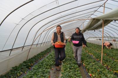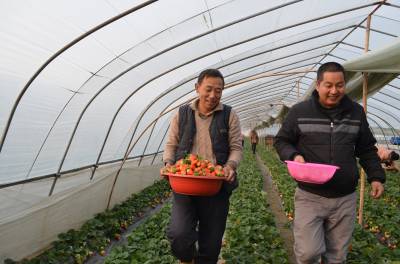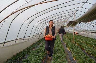 26日,安陆市辛榨乡张付村农民张俊采摘新鲜草莓。老张种草莓有10多年,每到春节,他的草莓就开始上市,吸引许多城里人来采摘。今年,老张种了7亩草莓。他说,今年草莓价格好,可以赚个6万元。作者通联:安陆市委宣传部 13886355004
