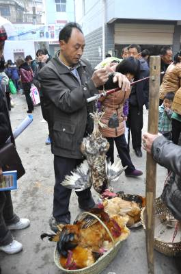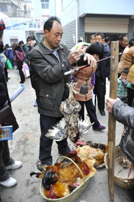 乡下 “土货”市场俏年味浓 1月27日,村民在恩施市红土乡农贸市场选购土鸡等年货。 春节临近,恩施城乡各农贸市场鲜活年鱼、猪、牛、羊肉、炒货水果、米糖糕点、年画对联等年货琳琅满目,村民忙着置办自己心仪的年货,市场里充满浓浓的年味。(本报视界网彭绍峰摄)