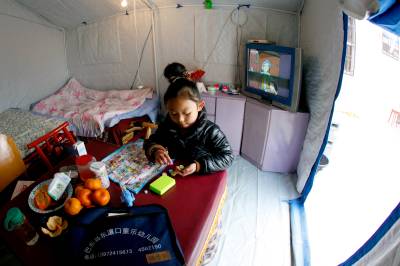 巴东地震灾区:灾民忙过年 1月27日,巴东县东瀼口镇童乐幼儿园的张雪娇小朋友在帐篷里帮妈妈整理内务。 去年“12·16”巴东县地震发生后,当地政府通过多种形式妥善安置了房屋严重受损的966户27286名受灾群众。随着春节临近,灾区的年味也愈加浓郁,灾区群众正忙碌着迎来灾后的第一个春节。本报视界网:梁斌 摄