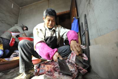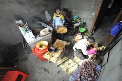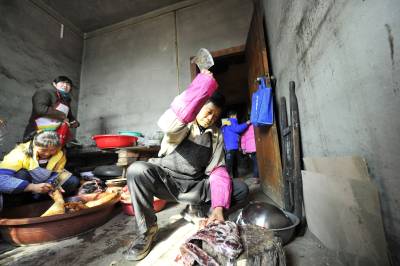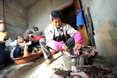 农历腊月二十七日,湖北省保康县玄虎村村民洪天文一家正在准备新年期间的食材。2014年春节即将到来, 全家齐聚一堂,累并快乐着。