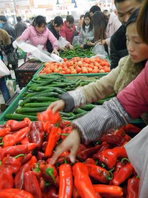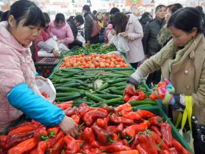 28日,云梦县建设路孝武超市平价农副产品专卖区各种时令菜新鲜、丰富,吸引了大批前来购买的市民。该县于22日依托孝商、孝武两家大型超市,建立了农副产品平价专卖区,经营品种主要是蔬菜、肉类、水产等鲜活农副产品。当市场价格大幅上涨或较为平稳时,平价商店销售的蔬菜价格至少要低于市场平均零售价15%,粮、油、肉、禽、蛋等品种价格要低于市场平均零售价5%,帮助低收入者和生活困难的群众得到实惠。 王云清 摄