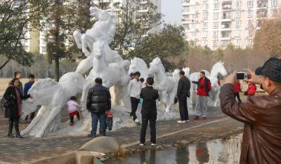 1月30日是大年三十。当日的湖北省武汉市艳阳高照,阳光暖人心,在汉口解放公园湿地旁,雕塑的白色八匹骏马,形态各异逼真,昂扬奔驰,给人们奋发向上的力量。吸引了市民和游人驻足观赏,马上留下难忘的马年瞬间。