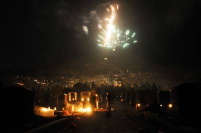 1月30日是我国传统的大年三十,这天下午至夜晚郧西县公墓内车水马龙热闹非凡,一般以三代四代人同来为过世亲人上灯,一坟两灯一边一盏,儿孙多的可多放几根点亮的蜡烛,为亲人们照路,接亲人们回家过年,而家门囗也亮两盏灯为过世亲人灵魂引路。而如今是吃过团年饭全家人去坟人烧点纸,放个炮,磕个头,上柱香,在点上两盏灯的风俗,流传至今的意思是后人莫忘前人,时刻要尽孝道,从而使郧西县公墓内每年三十夜灯火辉煌,如同又一座城市。 夲报视界网周家山 摄