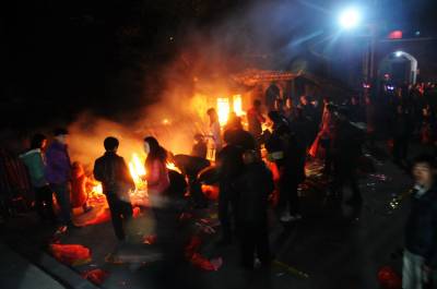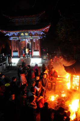 1月30日是我国传统的大年三十,这天午饭后至凌晨,郧西县西面山涯中间明清时期修建的悬鼓观里香火不断炮声灌耳,来此敬香,烧纸,磕头,放鞭,撞钟,求平安的人们纷纷赶来,以至通道常常被堵,管理人员不时的进行蔬导和香火管制,确保悬鼓观安全。 夲报视界网周家山 摄