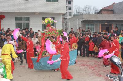 船灯回到船形寨 乡村文化闹新春 马年正月初一,竹溪县水坪镇船形寨村锣鼓喧天,乡亲们迎来了相隔三十年之久的彩船,船灯表演把马年春节装扮得喜气洋洋。据了解,这只彩船来自邻村小河边村春节文艺草根划船宣传队,该宣传队大年初一上午八时来到省级文化遗产保护单位船形寨拜年直到傍晚也无法脱身。宣传队把彩船划进了农家,划到了田间地头,划到了农民的心坎上,把党的政策、科技知识、一声声新年祝福用精彩的演唱奉献给乡亲们,乡亲们用一杯杯热茶欢迎宣传队前来拜了一个久违的传统文化年。视界网 王忠春 摄