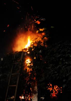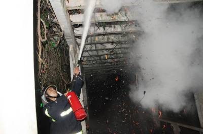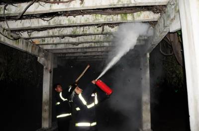 1月31日是大年初一,当晚郧县公安消防大队接警迅速出动很快将郧阳广场起火扑灭,让广场游客给予热烈掌声。由于游客在广场燃放鞭炮和烟花,将长廊上的长青藤点燃,广场游客报警,消防五分钟赶到将6米长3米宽过火区明火用灭火器扑灭,然后人工爬上去将余火打灭。从年三十晚郧县诮防已扑灭10起因燃放鞭炮和烟花而引起的失火。 夲报视界网周家山 王林 摄
