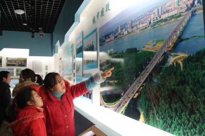 正月初三,丹江口市肖家沟小学四年级学生余果在市博物馆二楼展厅,听妈妈介绍城市新旧变化图片。正月初二到初七,该市博物馆各个展厅向公众免费开放,每天都吸引大批中小学生或自个或在家长陪同下前去参观,接受爱国主义教育。本报视界网 钱芹 摄 详细通联:丹江口职业技术学校办公室:钱芹 邮政:442708 手机:13477990812
