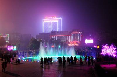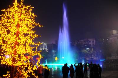 > 广场喷泉助兴大年之夜