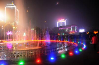 广场喷泉助兴大年之夜