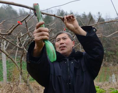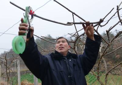 2月4日,正月初三,立春。建始县花坪镇花掌坡村3组果农郭振清正在猕猴桃园里忙剪枝上架。时下,担负该县猕猴桃产业发展重担的益寿猕猴桃专业合作社组织技术分队,深入全2万亩猕猴桃林田间地头指导农民适时“抢春”, 一派春管火热场景。本报视界网刘波摄 建始县新闻中心刘波联系电话13032794298
