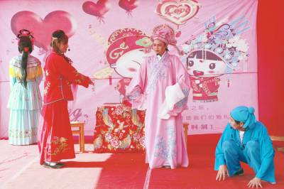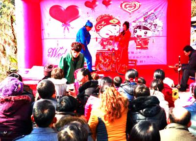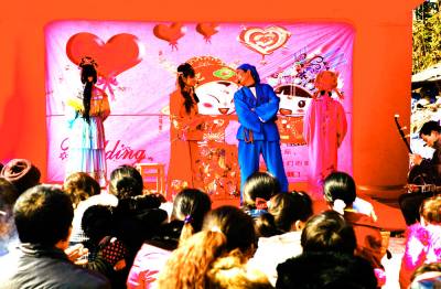 巴东堂戏历史悠久,是中国民间380个地方剧种之一,因多以堂屋为演出场所而得名,在本县江北地区广为流行,倍受当地群亲昧。 每当农户家的儿子结婚、女儿出嫁、给长辈祝寿等喜事,都要请堂戏班到家表演堂戏,喜庆热闹一番,让亲朋好友享受民间历史文化大餐。 本组图片系沿渡河镇唐戏班为本镇蛤蟆溪村三组沈传宗的女儿出嫁演出节目。 《本报世界网:李长凯摄/文》