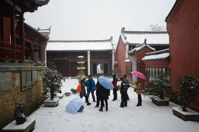 十堰市春节迎来最大一场雪 2014年2月6日,十堰周边的居民依然冒雪游览武当山周边的部分景点。 春节期间,自2月4日起,受一股强冷空气南下影响,十堰气温大幅下降气温在-2℃-4℃之间,正月初六十堰市遇上2014年来的最大一场大雪,十堰周边的居民、摄影爱好者游客结伴冒雪游览武当山部分景点。 由于雪大路滑,十堰境内的高速公路被关闭,进入武当山主要景区暂时也不得不封山谢客。(东风汽车悬架弹簧 有限 公司 叶桓 摄)
