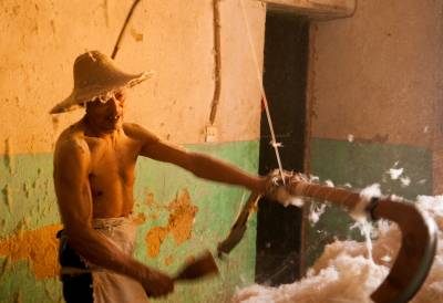 作品标题:传统生产方式弹棉絮;