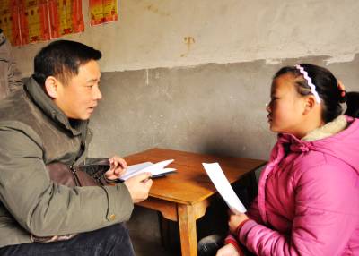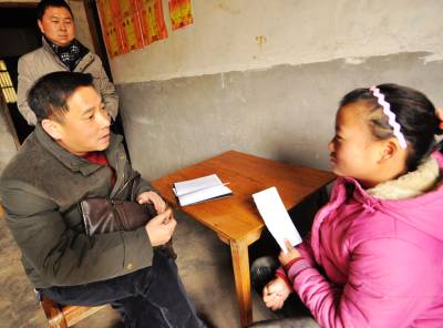 “有什么困难记住给我打电话” 2月10日,宜都市枝城镇党委书记龙顶泉将自己的电话号码写在纸上交给王友芹,并对她说:“有什么困难,学习情况怎样,一定要记住给我打电话啊!”王友芹是宜都市枝城镇赤溪河村一组人,其父亲因病去世,母亲患精神病走失,读初一的她成为一个无家可归的孩子。在今年宜都市委组织部开展的“结亲拜年”活动中,龙顶泉与这个不幸的孩子结为帮扶对象。
