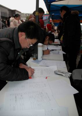 图6、应聘者在填登记表。