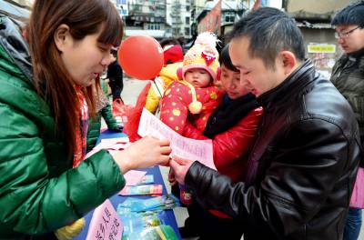 图为计生干部正在为在外打工回家的宛师傅夫妻介绍工作。