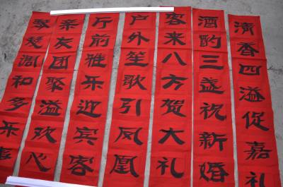 结婚对联是我国特有的文学艺术形式,起源于五代,兴盛于明清,至今不衰。如今,在当地,那家过喜事都提前请人帮忙。特别是写对联的人,大家都认为请要字写得好,有文学的人,帮忙写对联,还要给写对联的人放“红包”。