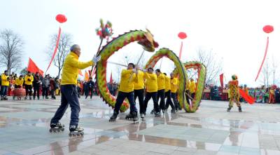 2.10.上午,武汉市第20届迎春舞龙大赛暨11届锣鼓比赛在汉口江滩市政广场举行.这届比赛氛围较之往年更为热烈,共有来自江岸、江汉、硚口、汉阳等13个城区和东湖高新技术开发区的30支龙队、19支鼓队和3支民俗表演队伍参加,现场演职人员近5000人。