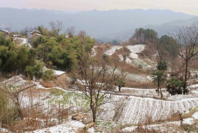 香龙山位于晓峰风景区,与南边村的大梁山相对构成了陡峭的峡谷,峡谷间就是晓峰河,即将全线贯通的宜巴高速公路顺河而建。香龙山海拔1100多米,临近峡谷的一面山峰崎峻而苍翠,山的另一面地势相对平缓,依山建有茶园、果园、稻田,因山顶就是白果树村,村里建了较大面积的银杏树苗圃。著名的白果树瀑布(三峡大瀑布)景区距此约10公里,其瀑布的发源地就在这里。这里山高田少,气候寒冷,物产贫瘠,山民除精心耕耘好现有的农田外,就是利用山地种些药材、核桃、茶叶、樱桃等经济作物,年轻人多到宜昌或省外去打工,一年下来收入也颇丰。近几年政府投资修通了从山顶连接省道的盘山路,从山顶通往城里的班车一天有三趟,留在村里的青壮年通过跑运输、给爱好徒步的驴友提供服务,生活也得到了较大的改善,不少别致的小洋楼矗立在山坳,也是一景。近日笔者趁着雪天,从峡谷一面顺着崎岖的山路,历时三个多小时的攀爬,到达山顶,用镜头记录了这里宁静而淳朴的田园风光。(视界网 丁朴报道 15872456099)